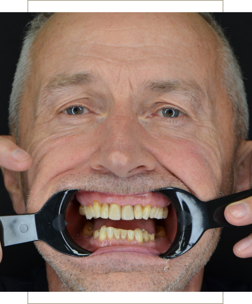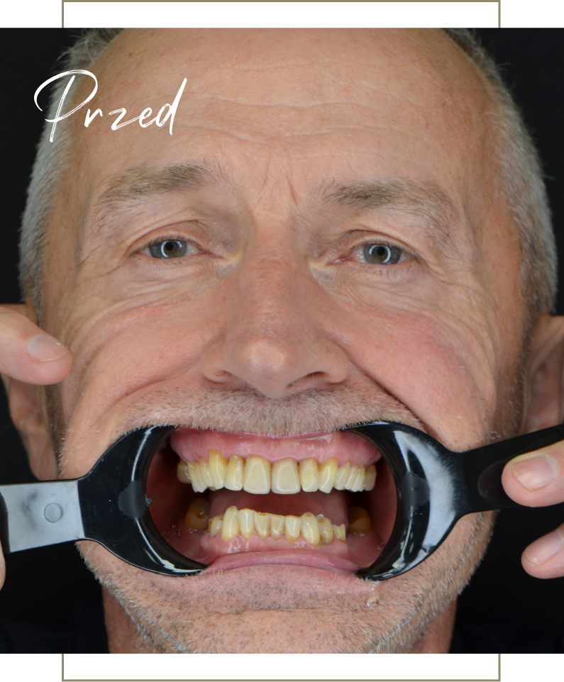 Przez lata Pan Dariusz czuł, że jego uśmiech nie oddaje tego, kim jest. Braki i nierówny kształt zębów odbierały mu pewność siebie. W wielu gabinetach słyszał, że jego przypadek jest zbyt trudny. Jednak nie poddał się i przekroczył próg Partner Dent, gdzie zaplanowaliśmy jego nowy uśmiech krok po kroku.