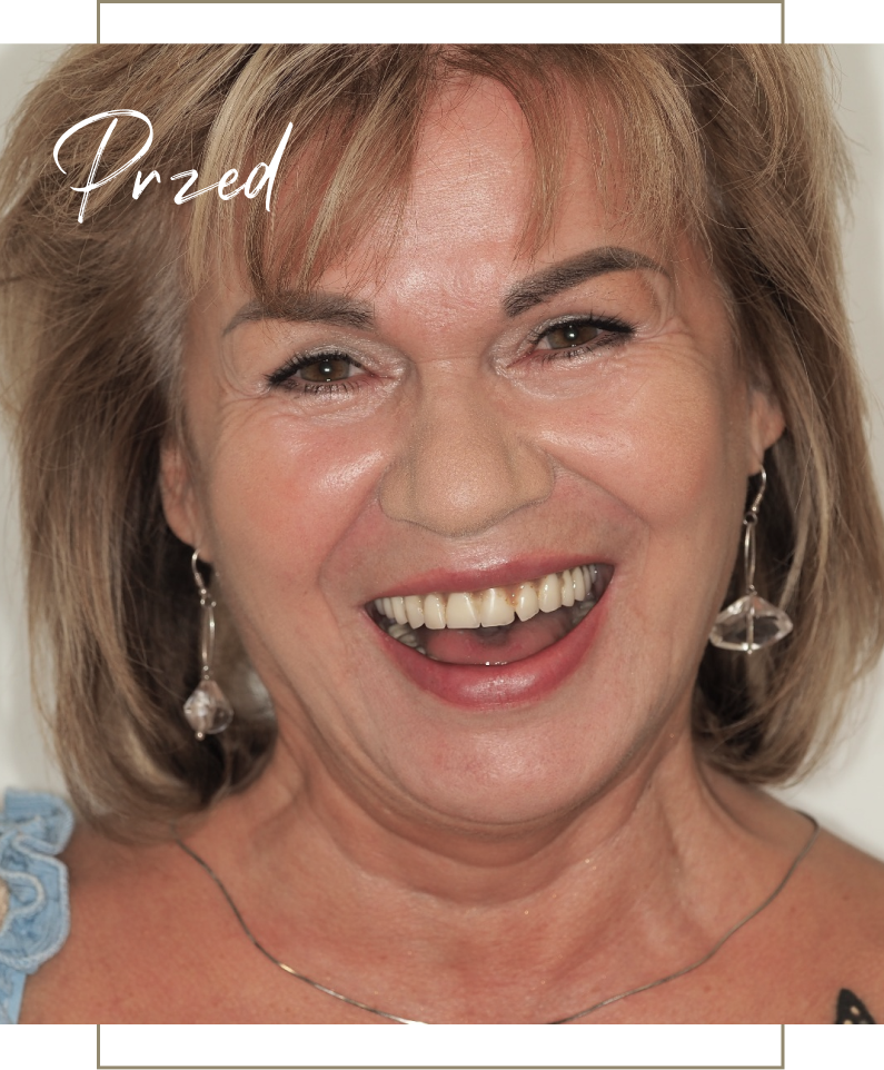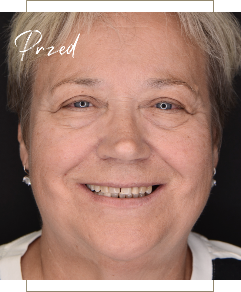 Pacjentka przez wiele lat nosiła protezę, która odbierała jej swobodę i pewność siebie. Implanty były jej cichym pragnieniem – aż w końcu przekroczyła próg Partner Dent, gdzie rozpoczęła drogę do nowego, pięknego uśmiechu.