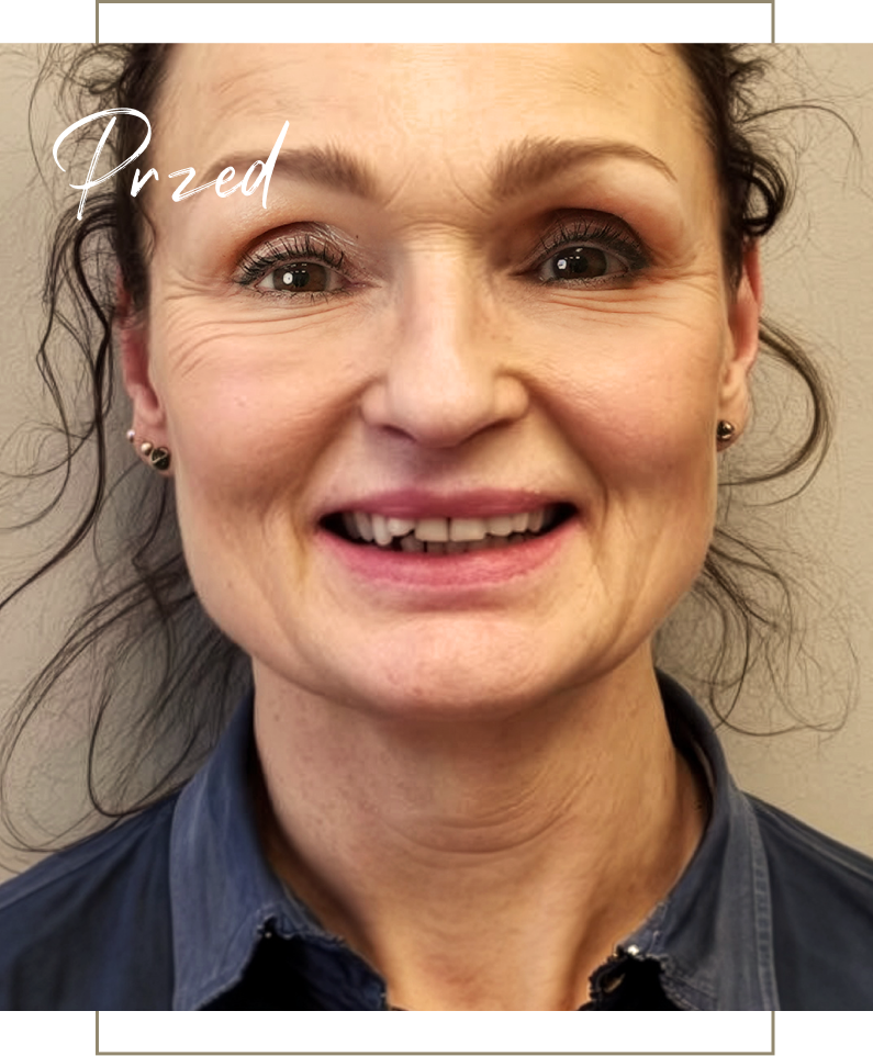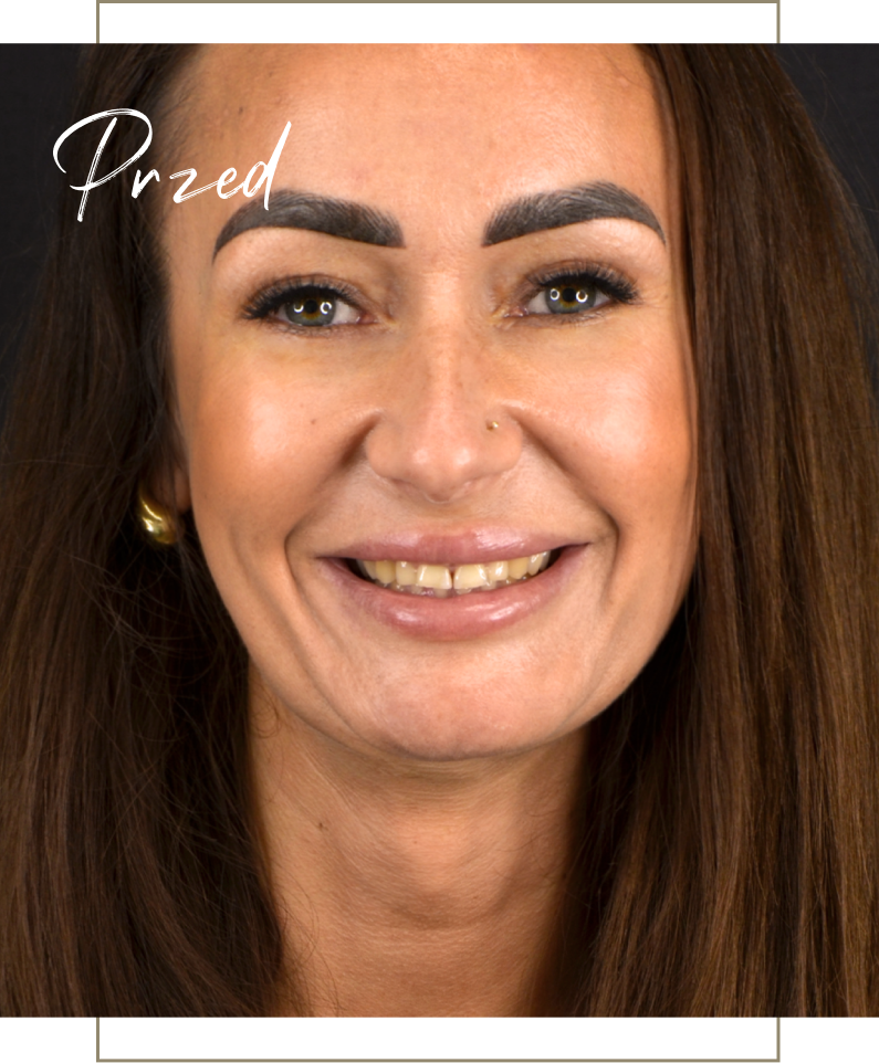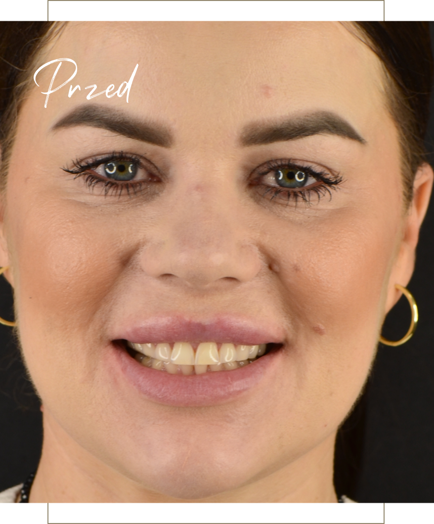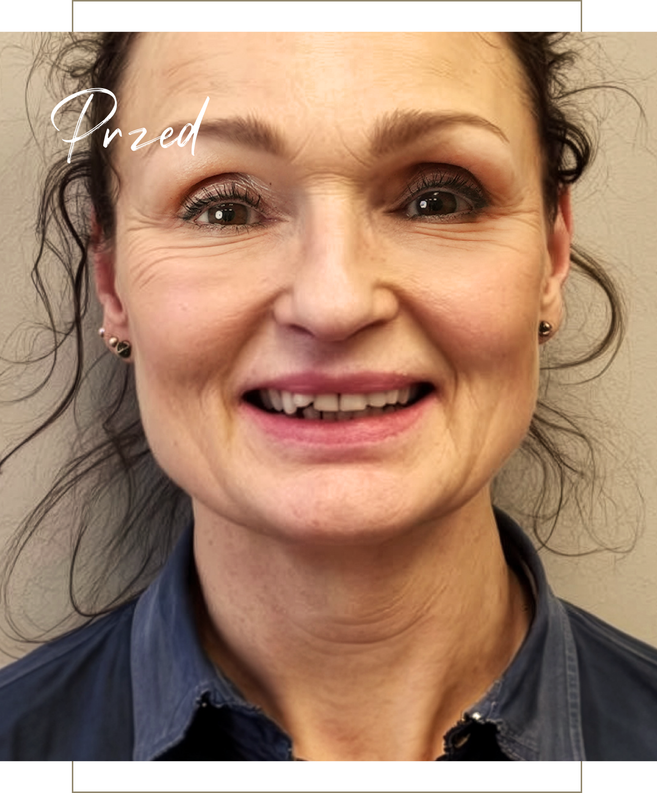 Przebyta kilka lat wcześniej choroba odcisnęła piętno na zdrowiu i kondycji zębów Pani Anny. Metamorfoza uśmiechu była dla niej nie tylko zmianą estetyczną, ale także ważnym krokiem w odzyskaniu pewności siebie i radości z uśmiechania się na nowo.